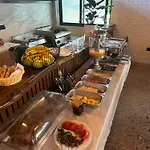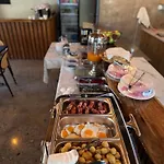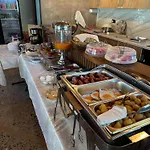 Det serverar en frukostbuffé varje morgon.
